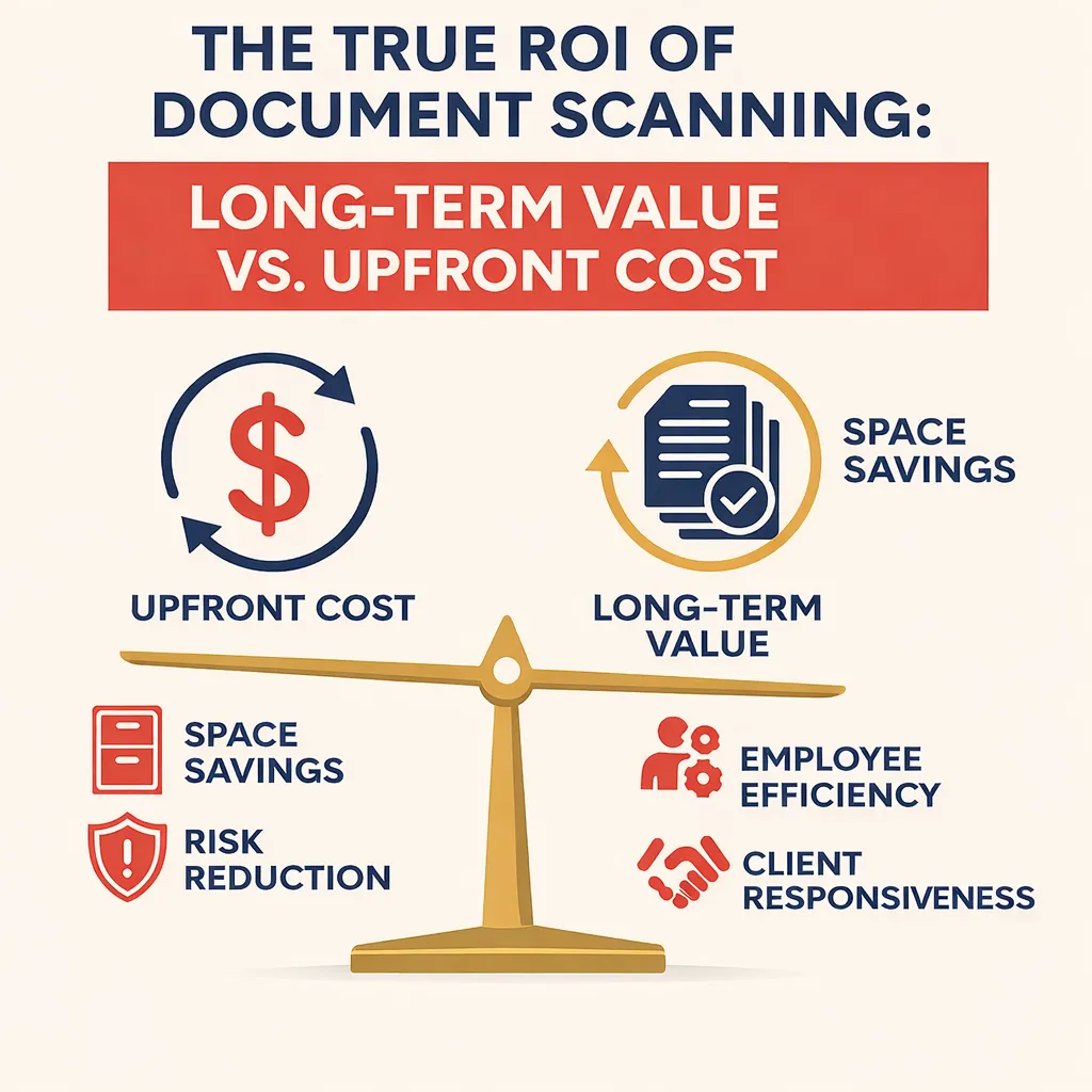 Improve efficiency, organization, and accessibility by transforming paper-heavy processes into streamlined digital workflows. Document scanning reduces physical storage, enhances collaboration, and provides fast, reliable access to the information your team needs. With secure, easily shareable digital files, you can boost productivity, strengthen data protection, and move toward a more organized and environmentally friendly workplace. Choosing document scanning is a strategic step toward a modern, efficient, and sustainable office..